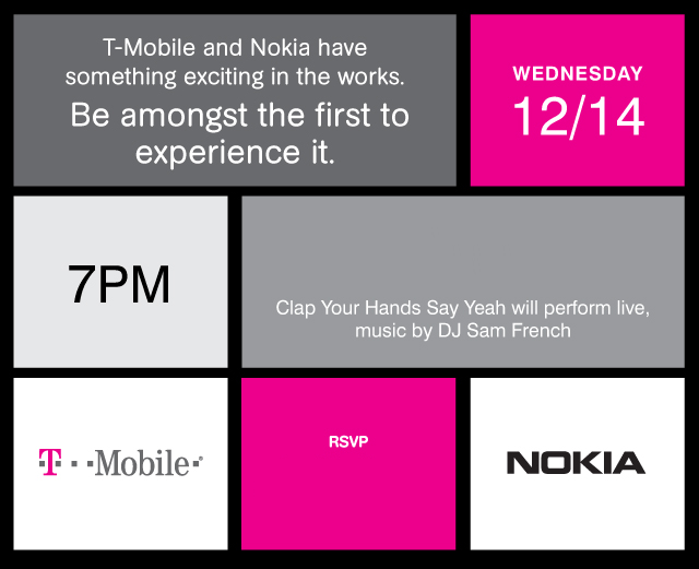 T-Mobile has announced they will be hosting an event on December 14 in association with Nokia. At first glance, my guess is they will announce some sort of windows phone device, most likely the Lumia 710 (i mean just look at the tiles for the invites). Stay tuned for more information.